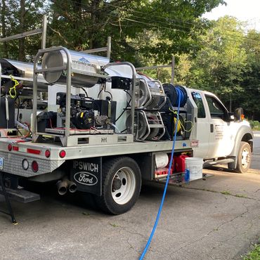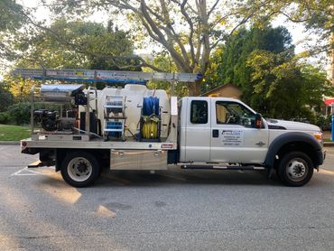 We can use a vacuum system to remove dirty water as we clean horizontal surfaces which leaves a cleaner surface and eliminates run off problems